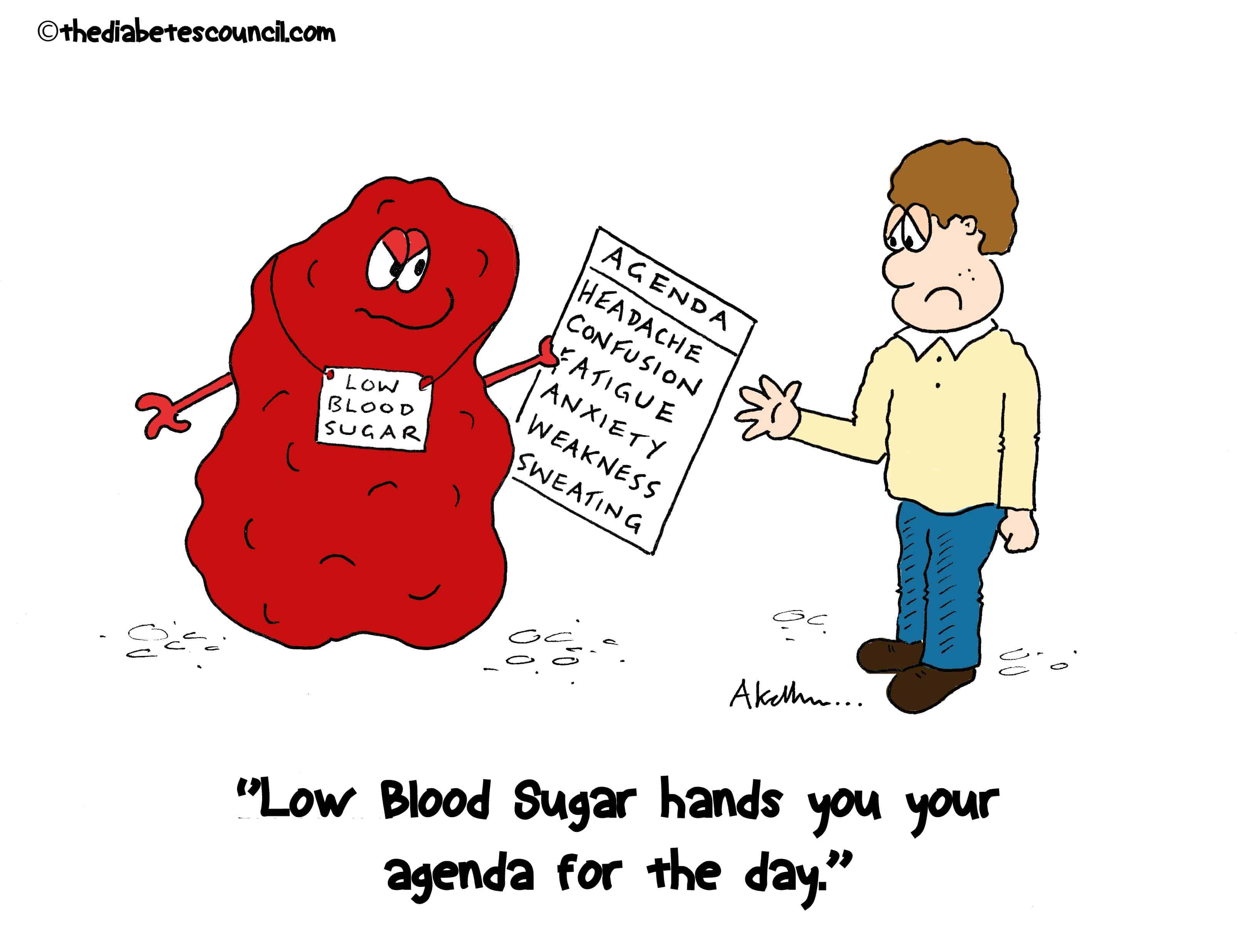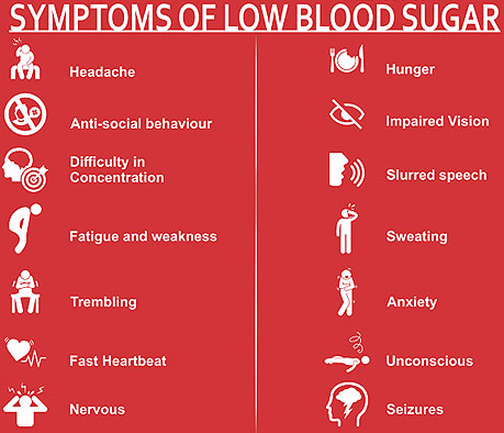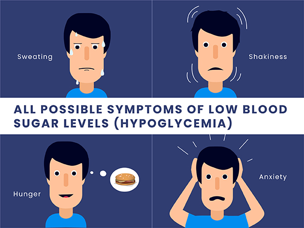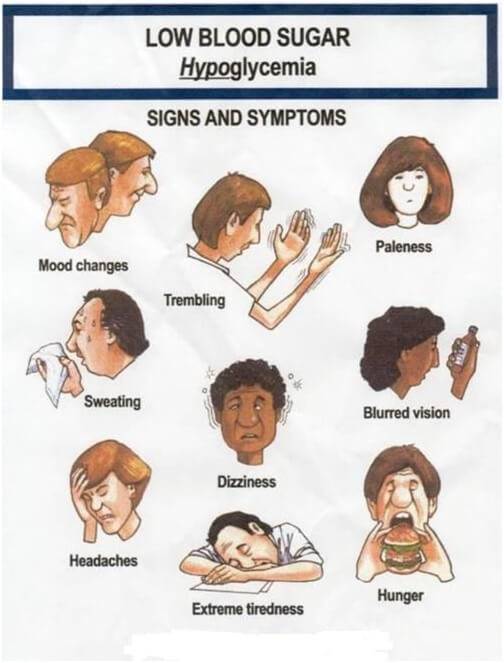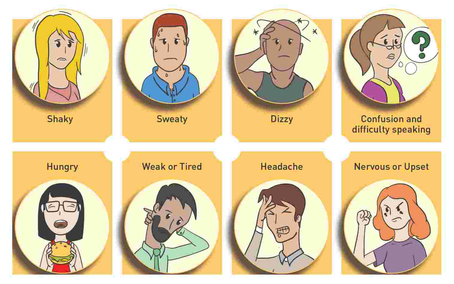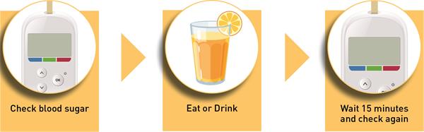 저혈당의 증상을 잘 알아두고, 증상이 나타나면 즉시 대처합니다.