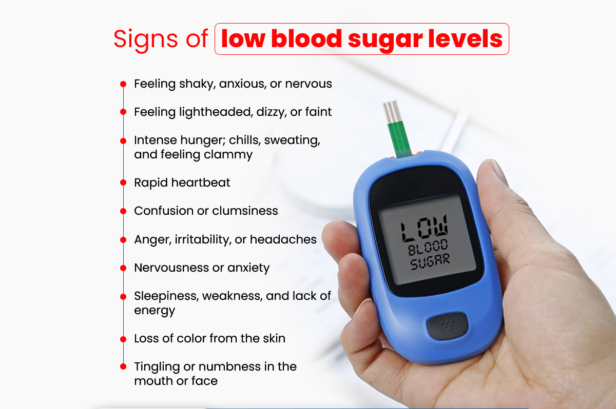 저혈당의 증상은 배고픔, 식은땀, 떨림, 피로감, 어지러움, 두통 등이 있습니다. 이러한 증상이 나타나면 즉시 포도당이 함유된 음식이나 음료를 섭취하여 혈당을 올려야 합니다.